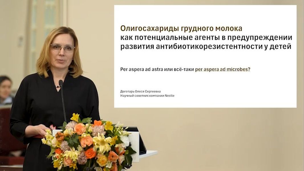 В своем докладе Елена Валериевна останавливается на удивительных свойствах таких компонентов грудного молока, как олигосахариды: как они «работают», какие преимущества это дает детям на грудном вскармливании, почему дети могут реже болеть, если в их питании есть олигосахариды грудного молока.